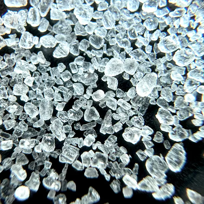 Le sel fin de Gruissan présente de petits grains de moins de 1,2 mm, lisses et réguliers.